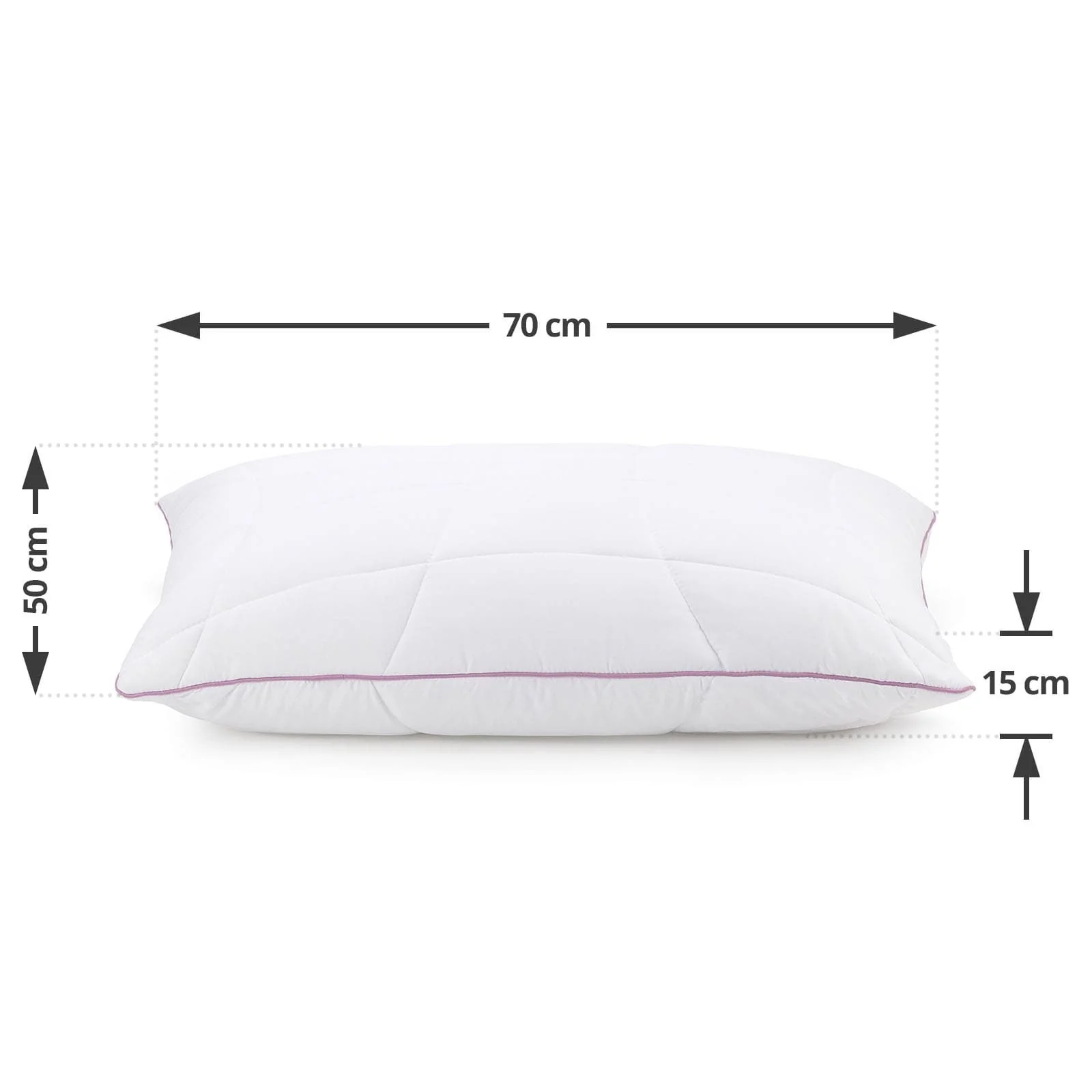 50 x 70 cm. For all sleeping positions. With lavender essence. 100% microfibre. Washable at 60 °C.